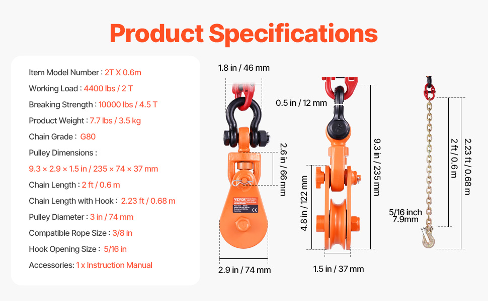 Heavy Duty Chain: Upgrade to a 2-foot G80 snatch block chain. Built with high-strength alloy and heat-treated for added durability, it’s wear-resistant and shock-resistant. The galvanized surface resists oxidation, making it ideal for extreme environments.