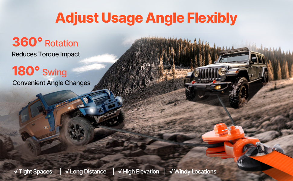 360° Rotating Hook: The winch snatch block comes with a 360° rotating hook that automatically adjusts to your load's angle. It helps keep the rope from twisting and wearing out, ensuring smooth and stable lifting every time. No more struggling with tangled ropes or awkward lifting.