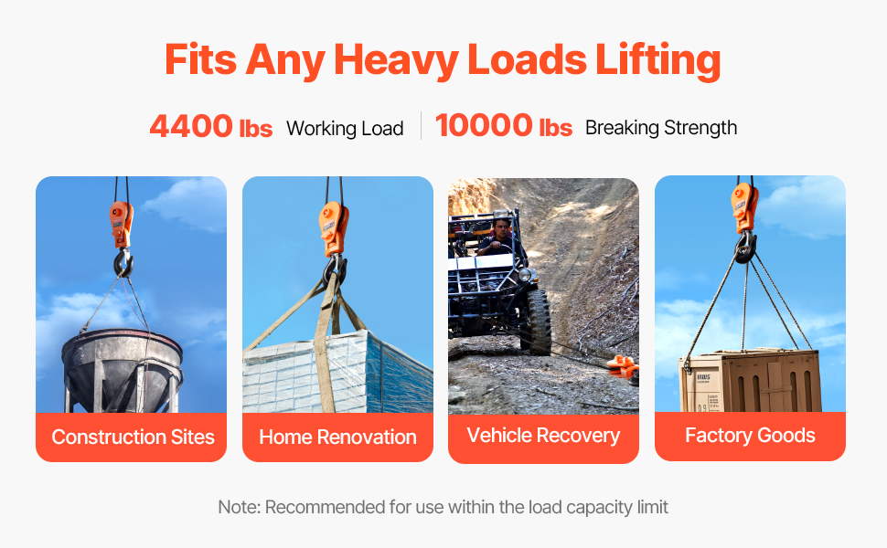 4400 lbs Lifting Power: This snatch block is built to handle a heavy load—up to 4400 lbs (2T) working capacity, with a break load of 10,000 lbs (4.5T). With its 2.9-inch pulley, you can easily pull heavy materials, making it ideal for construction sites or off-road vehicle recovery. Save energy and get the job done faster.
