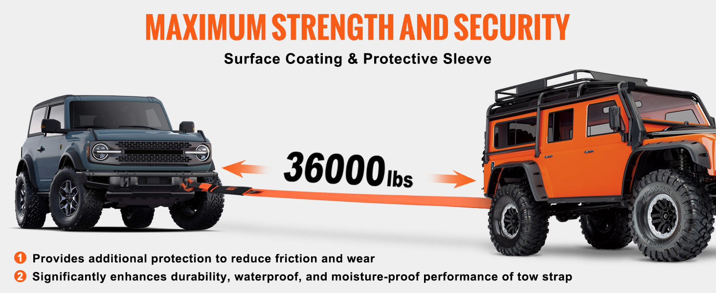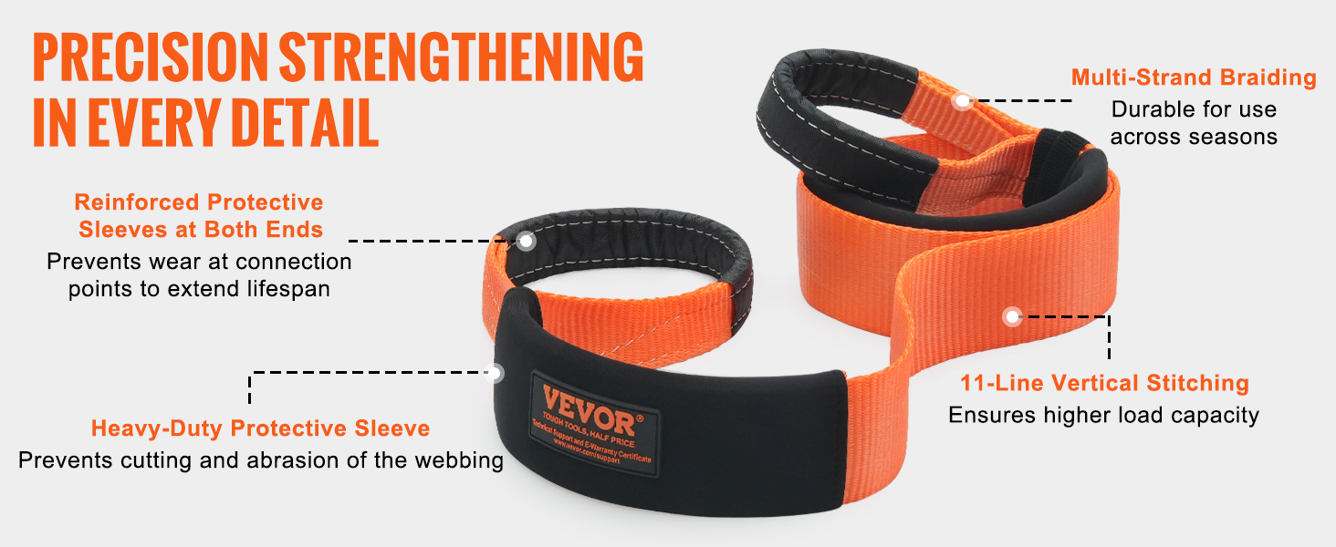 Upgraded Details: Our recovery strap is all about toughness! With advanced surface treatment, it's super durable and waterproof, ready to tackle any rough conditions. Plus, the added protective sleeves at both ends reduce wear and tear, boosting lifespan and making it safer and comfier to handle.