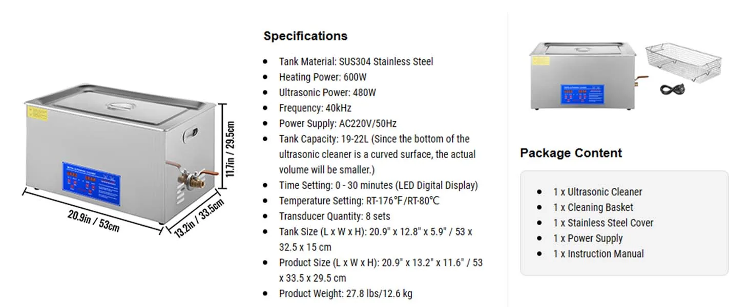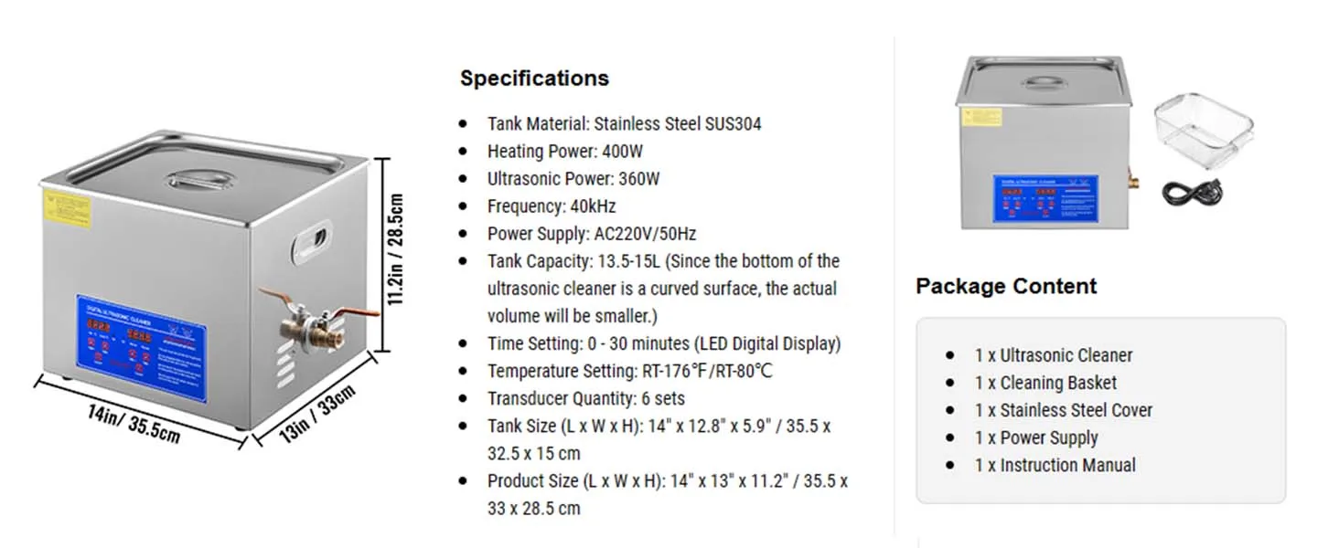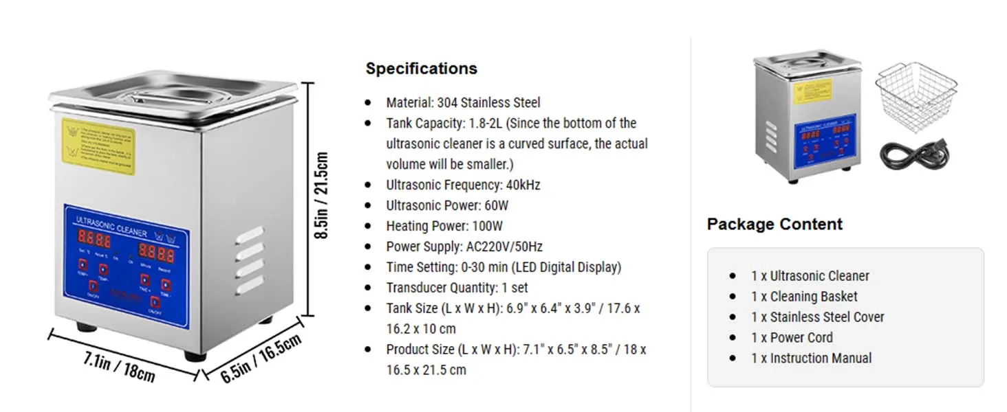 Utilizing advanced transducer technology, the sonic cleaner generates 40kHz ultrasonic waves that create millions of tiny bubbles, effectively reaching surfaces and crevices to thoroughly clean dirt without damaging the appearance or quality of items.