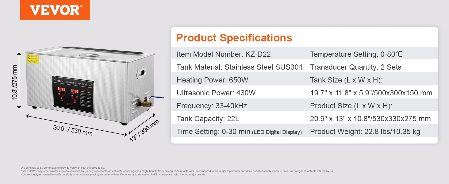Utilizing advanced transducer technology, the sonic cleaner generates 40kHz ultrasonic waves that create millions of tiny bubbles, effectively reaching surfaces and crevices to thoroughly clean dirt without damaging the appearance or quality of items.