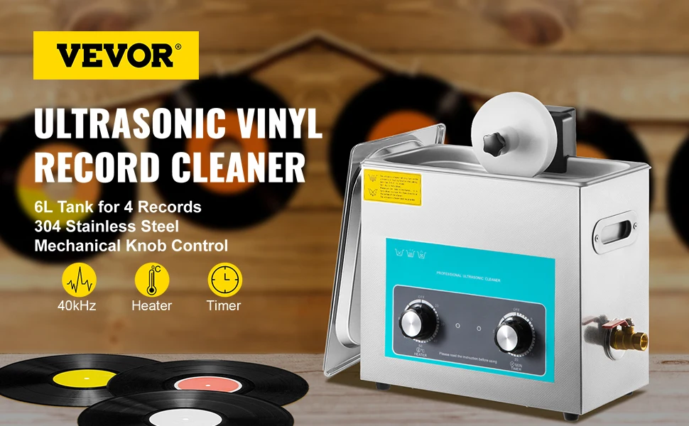 【HIGH-CAPACITY RACK】 - This commercial ultrasonic cleaner is designed with a washing rack for vinyl records, made of 6062 aluminum, which can clean 4 vinyl records at a time. The vinyl records washing racks are driven by a built-in motor at 720 degrees/min and cleaned by ultrasonic vibration.