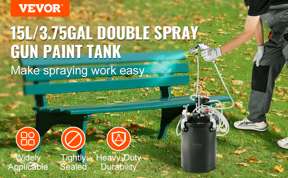Paint What You Want: Our spray paint tank is versatile and suitable for both home decoration and industrial spray painting. One person can easily complete spray painting tasks on home decor, walls, fences, construction vehicles, ships, and more. Thanks to the two 3m long hoses, which make high-altitude painting effortless.