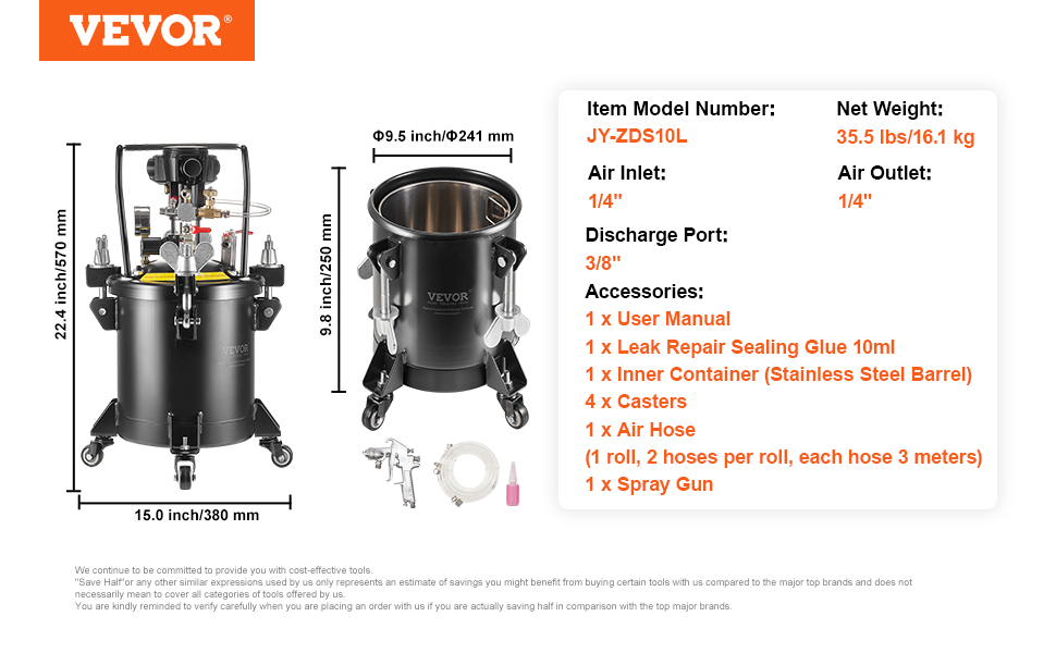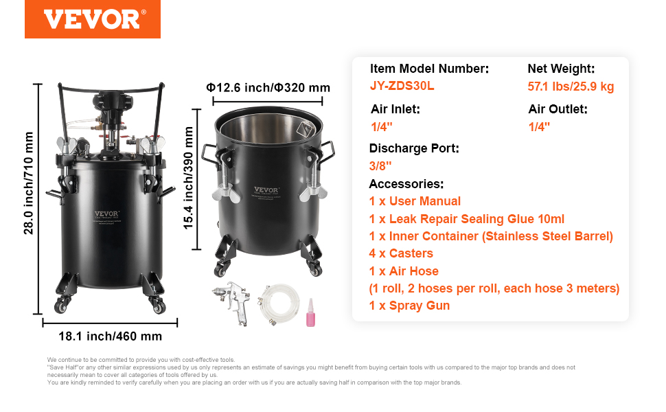 Upgraded Sealing: The high paint pressure pot has been upgraded with high-quality, pressure-resistant metal material and a rubber sealing ring at the bucket mouth. It has four lid sealing clamps that securely close and are equipped with leak repair sealant. It underwent a water tightness test before leaving the factory to ensure no gas leakage issues.