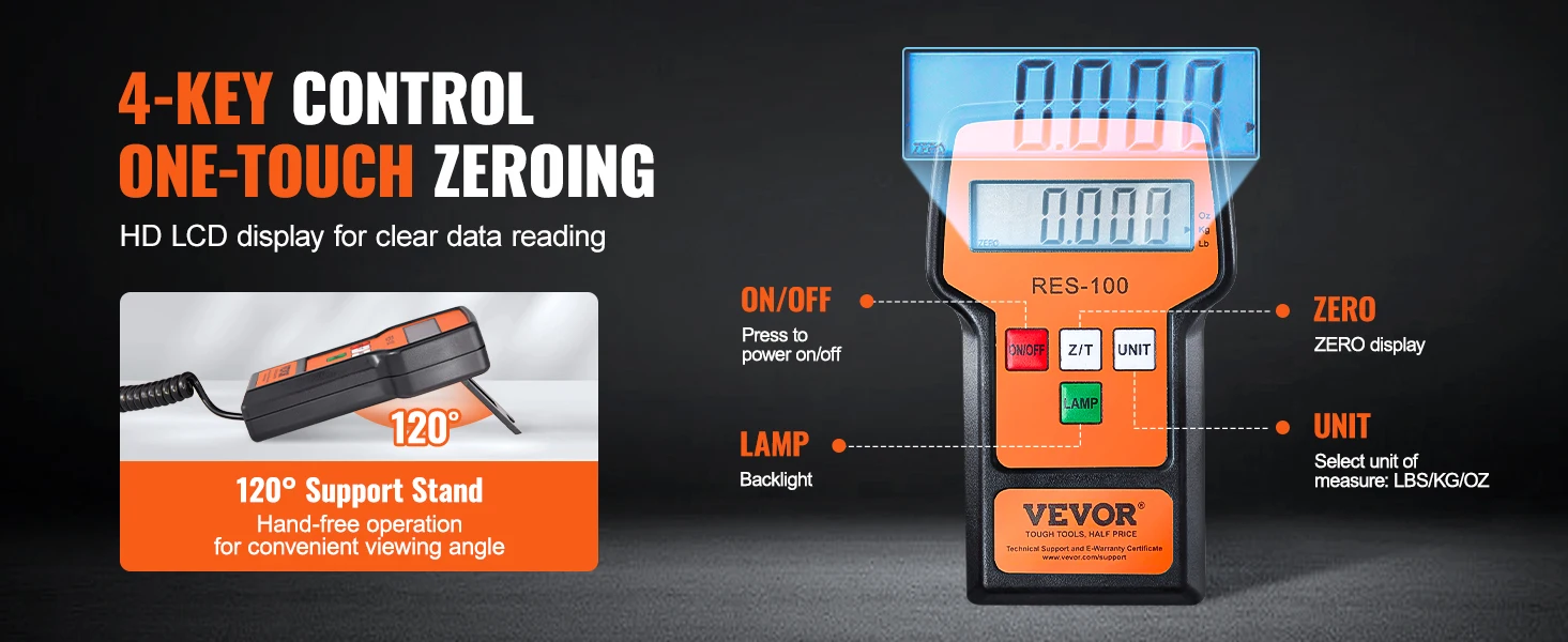4-Key Wired Remote Control: This refrigerant charging weight scale is equipped with an HD LCD display and four-button backlight control panel for simply operation. Thanks to the 120° adjustable stand, allowing for hassle-free data reading from any position without the need to physically hold the device.