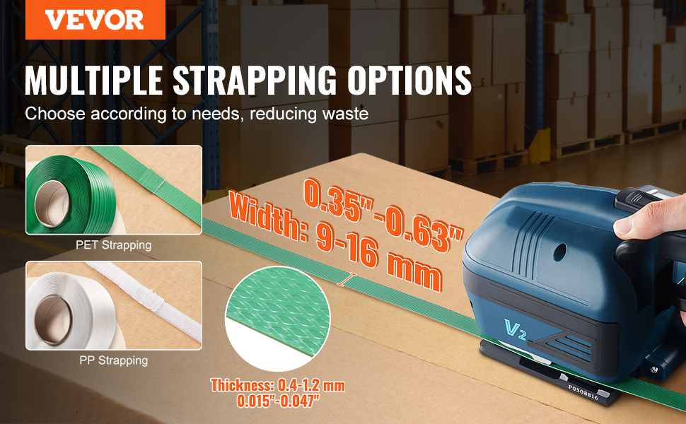 Versatile Strapping Options: Our electric strapping machine works great with polypropylene (PP) and polyester (PET) strapping bands. It handles widths from 0.35" to 0.63" and thicknesses from 0.02" to 0.05". This means you can easily pack items of different sizes and weights, saving you cost by choosing the right strap for the job.