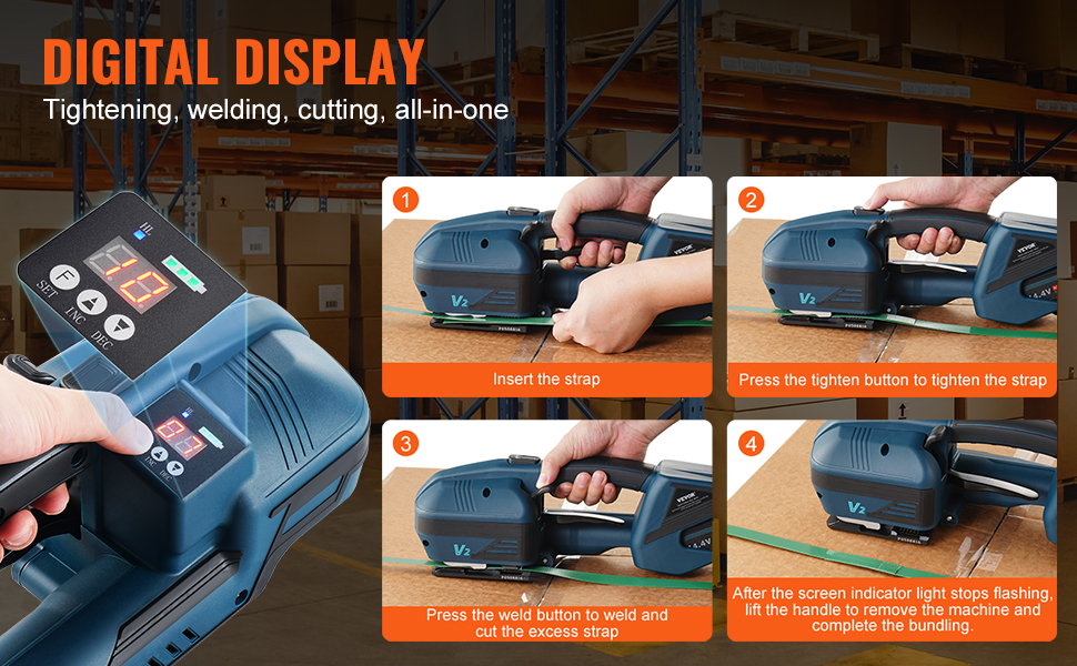 Easy to Use: This smart strapping machine comes with a digital display for super easy operation. One-button start, quick positioning, and intelligent sensing make strapping a breeze. You can adjust it to fit different sizes and shapes of goods, making your work easier and more fun.