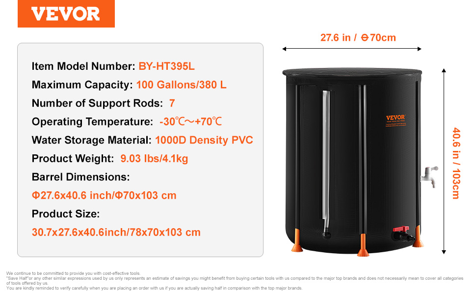 • Quality You Can Trust: Our portable rain barrel is made from premium 500D waterproof PVC material with strong UV resistance, safe to use. The high-temperature heat-sealed construction ensures excellent barrel seal, preventing water leakage or infiltration. It can withstand temperatures from -30℃ to 70℃, is used in both extreme cold and heat.