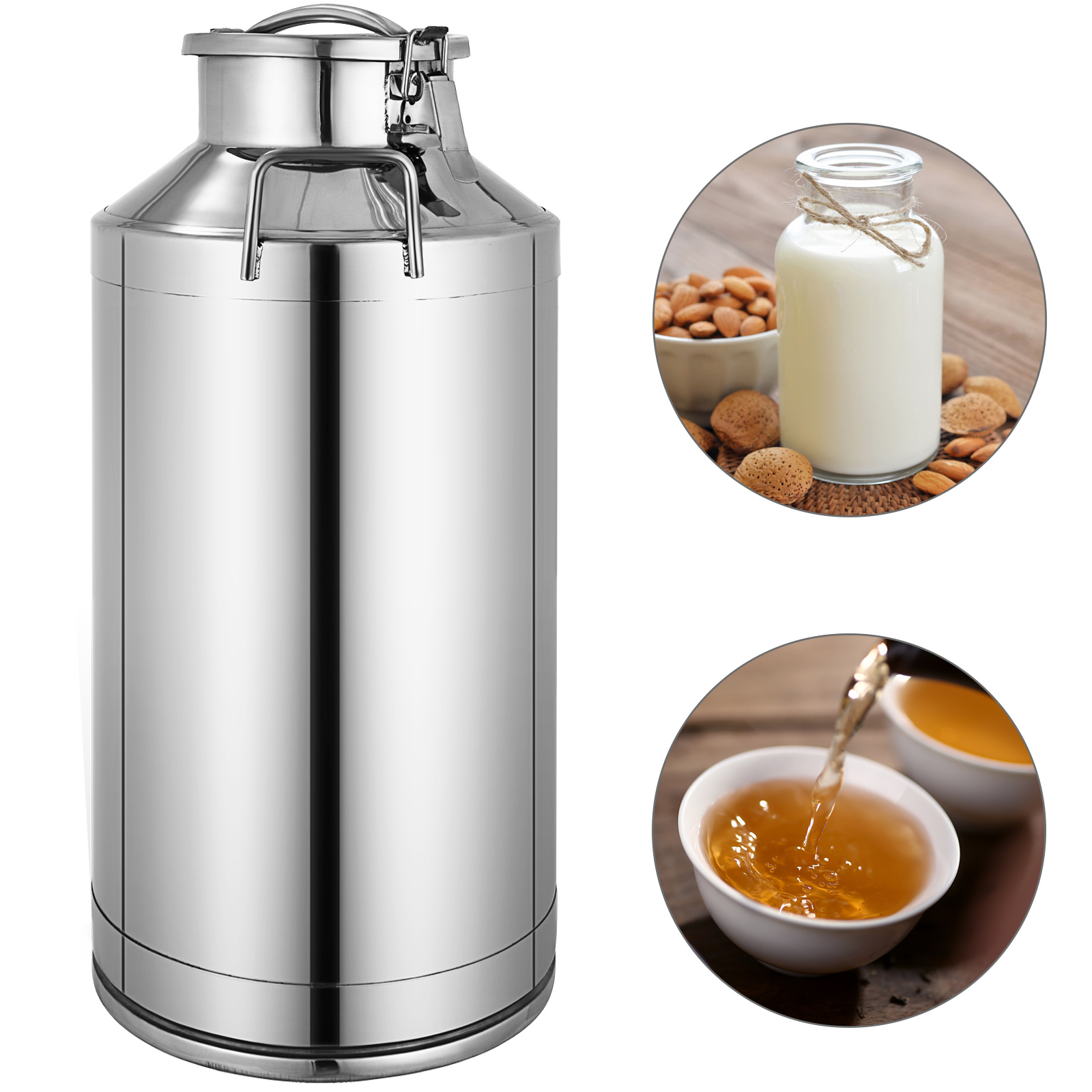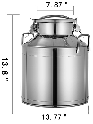 A great helper for your home and business; Our 2.64/5.3/13.2 gallon stainless steel milk can is ideal for food storage, especially liquid food, such as milk, oil, wine, water, soup, and oatmeal.